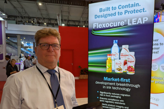 Flint Group hadde en ny blekk som det nesten ikke var lov å fortelle om, ifølge Niklas Olsson, Global Brand Manager i selskapet. Flexocure LEAP er en blekk som gjør det enklere å trykke matemballasje ved å bestå migrasjonstester.