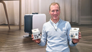 Daglig leder Andreas Krona med nye Mill Smart WiFi gulvtermostater. Foto: Mill